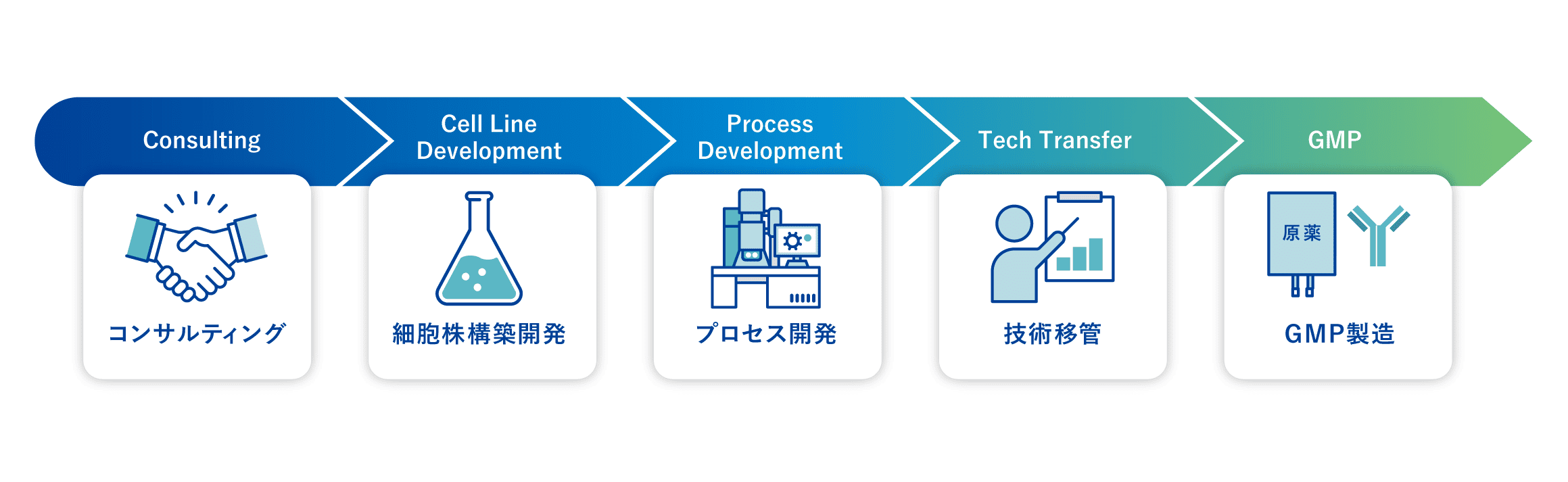 当社は、抗体医薬品の開発初期段階からGMP商用製造に至るまで、